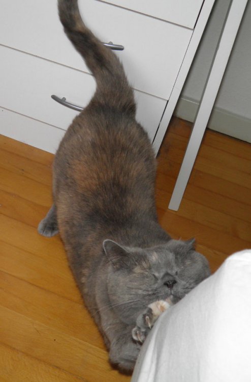 Tak, hun er meget lækker og hun elsker at putte, og ligge op ad mig, samt være under dynen sammen med mig.